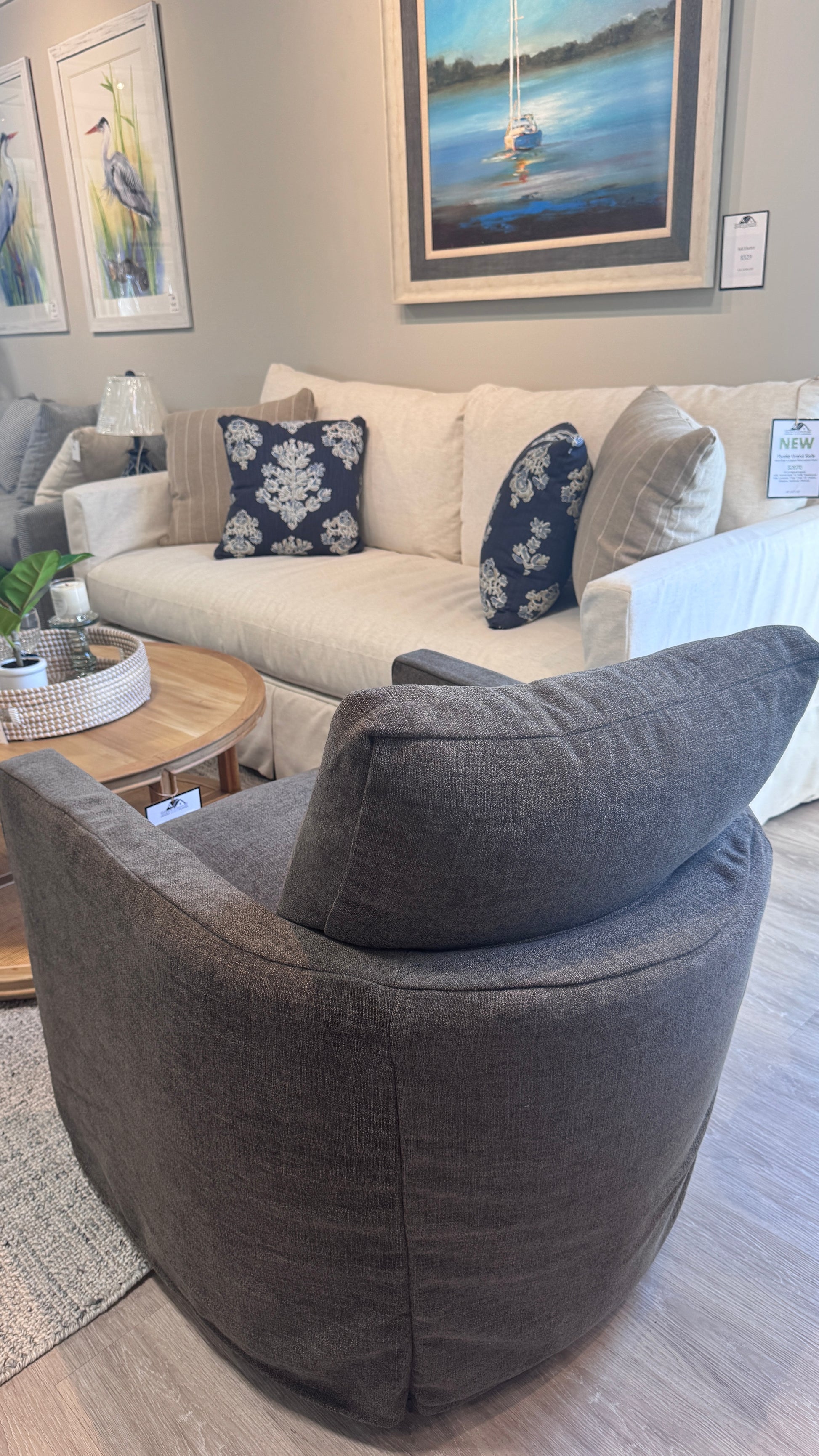 The Beau Swivel Chair by Four Seasons offers effortless comfort with a relaxed, coastal-inspired slipcovered design. Its smooth swivel base makes it perfect for open living spaces, allowing you to easily turn toward the conversation or the view.